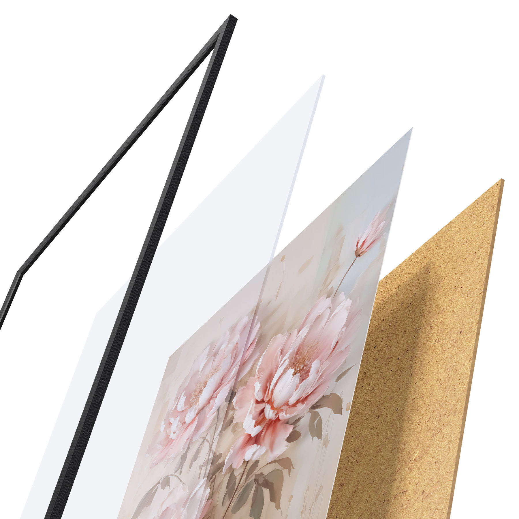 L’affiche encadrée est composée d’un cadre, d’un plexiglas, d’une image imprimée et d’un support en aggloméré. Elle est prête à être accrochée au mur grâce aux fixations situées à l’arrière.
