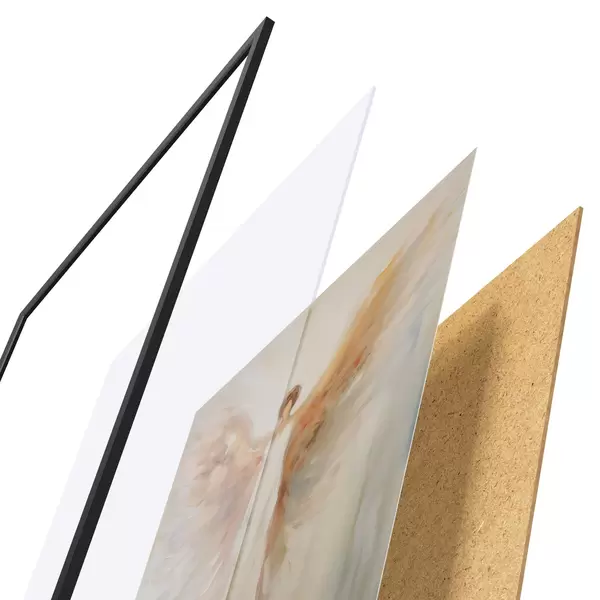 L’affiche encadrée est composée d’un cadre, d’un plexiglas, d’une image imprimée et d’un support en aggloméré. Elle est prête à être accrochée au mur grâce aux fixations situées à l’arrière.