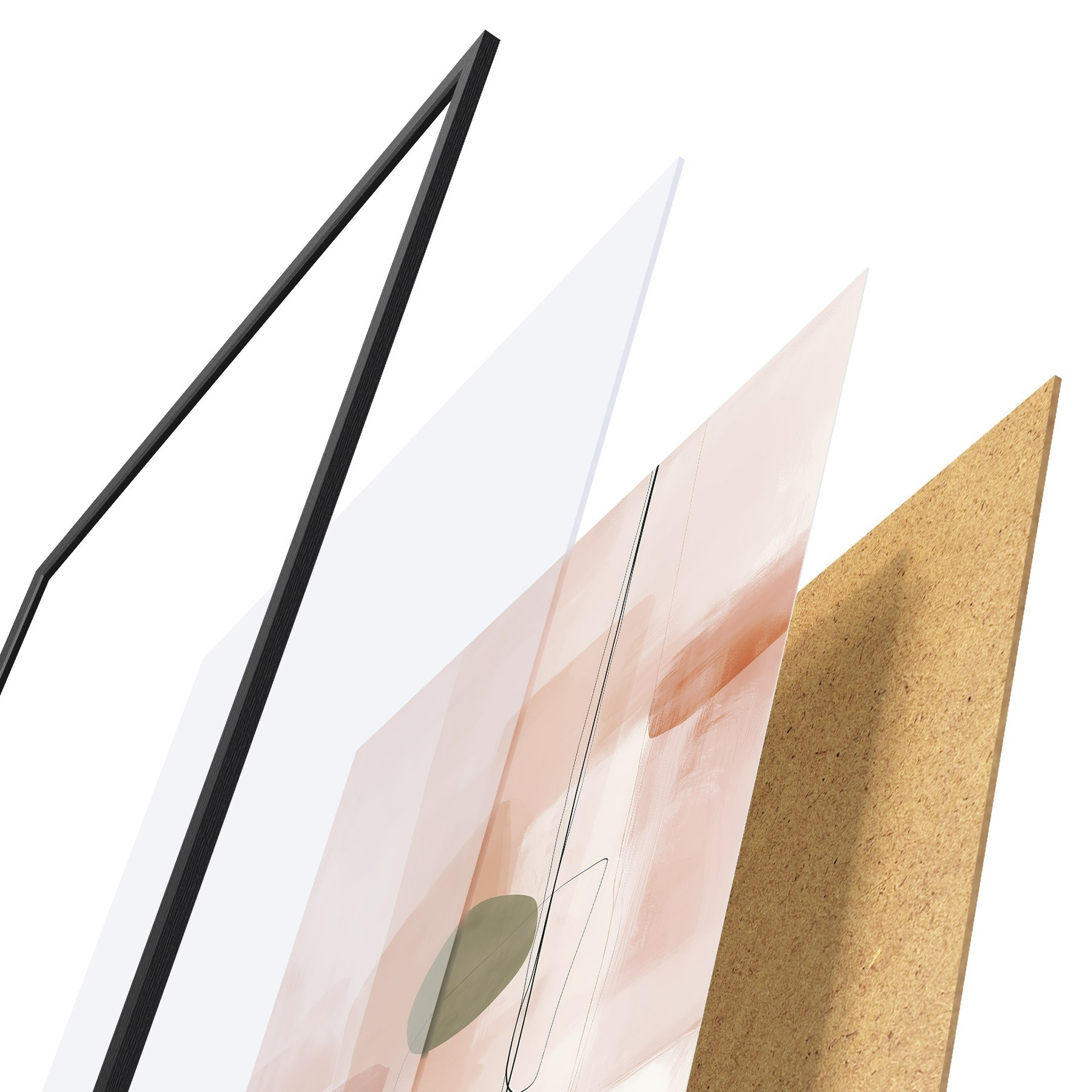 L’affiche encadrée est composée d’un cadre, d’un plexiglas, d’une image imprimée et d’un support en aggloméré. Elle est prête à être accrochée au mur grâce aux fixations situées à l’arrière.