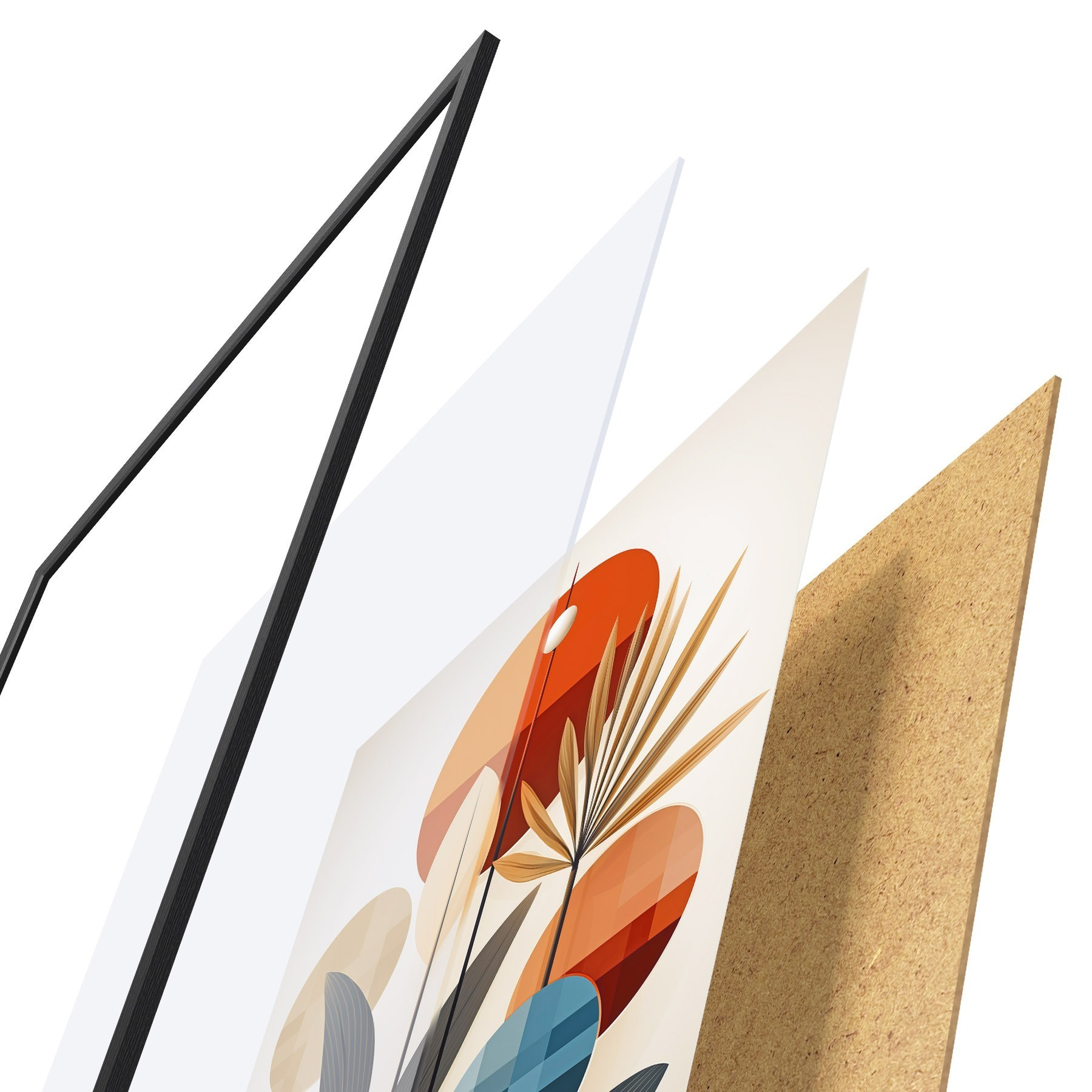 L’affiche encadrée est composée d’un cadre, d’un plexiglas, d’une image imprimée et d’un support en aggloméré. Elle est prête à être accrochée au mur grâce aux fixations situées à l’arrière.