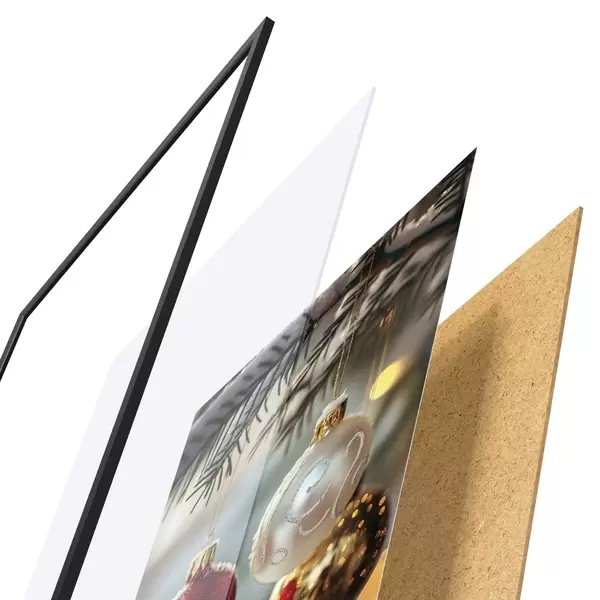 L’affiche encadrée est composée d’un cadre, d’un plexiglas, d’une image imprimée et d’un support en aggloméré. Elle est prête à être accrochée au mur grâce aux fixations situées à l’arrière.