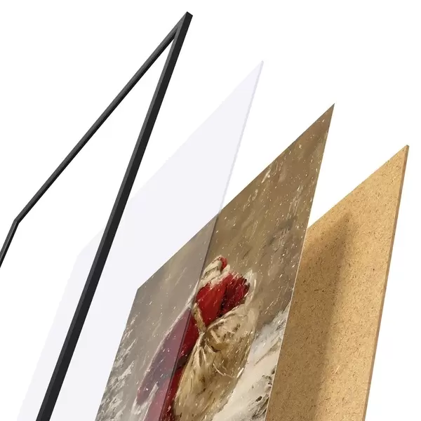 L’affiche encadrée est composée d’un cadre, d’un plexiglas, d’une image imprimée et d’un support en aggloméré. Elle est prête à être accrochée au mur grâce aux fixations situées à l’arrière.