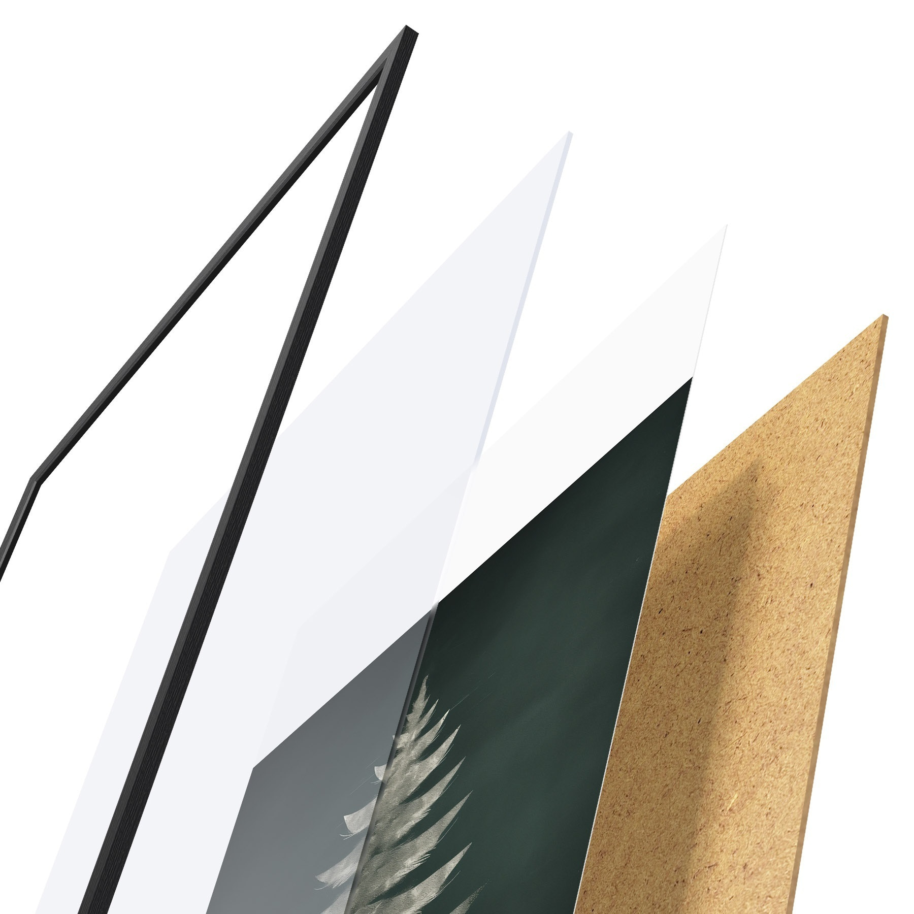 L’affiche encadrée est composée d’un cadre, d’un plexiglas, d’une image imprimée et d’un support en aggloméré. Elle est prête à être accrochée au mur grâce aux fixations situées à l’arrière.