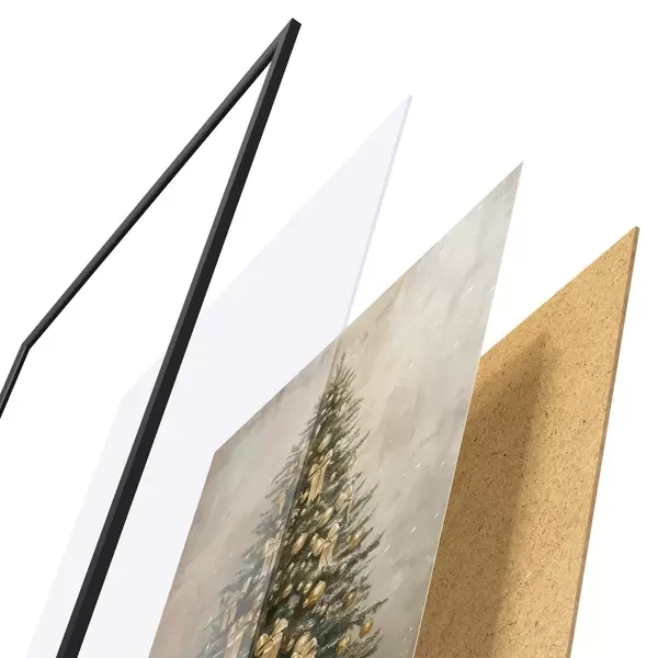 L’affiche encadrée est composée d’un cadre, d’un plexiglas, d’une image imprimée et d’un support en aggloméré. Elle est prête à être accrochée au mur grâce aux fixations situées à l’arrière.