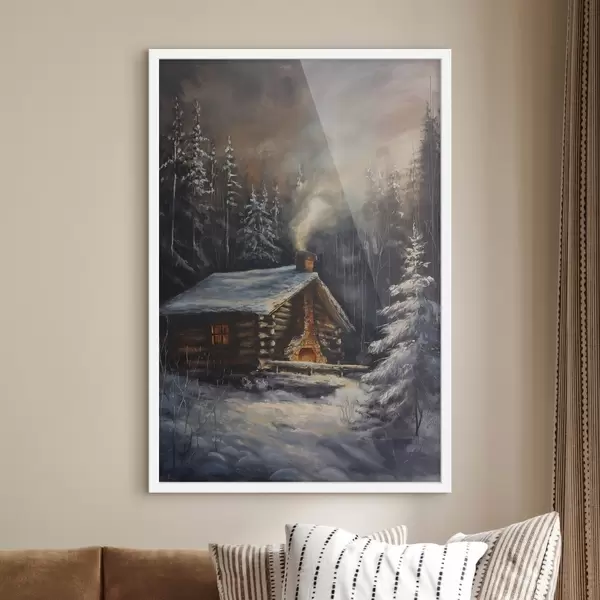 Poster Chalet dans une forêt en hiver f46606