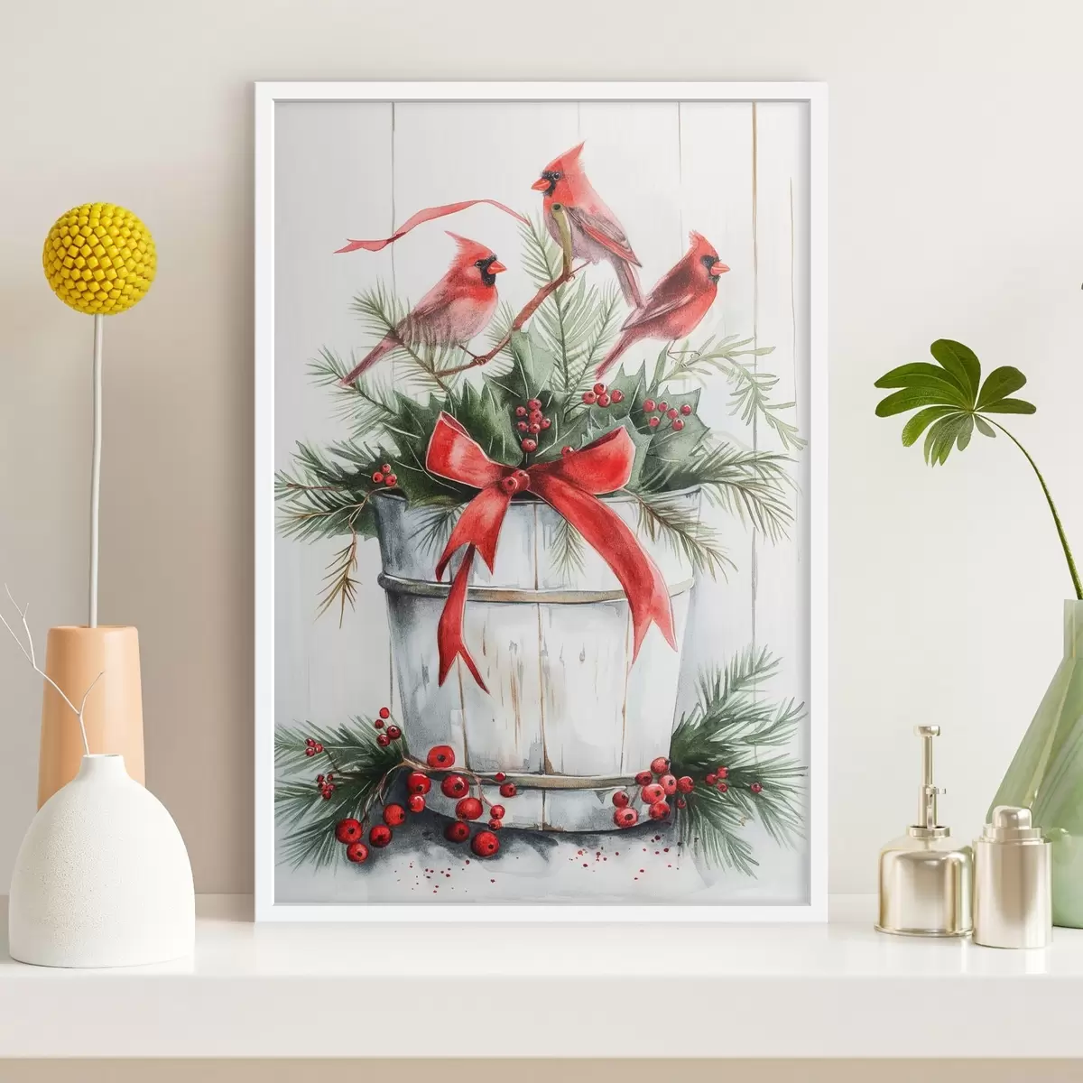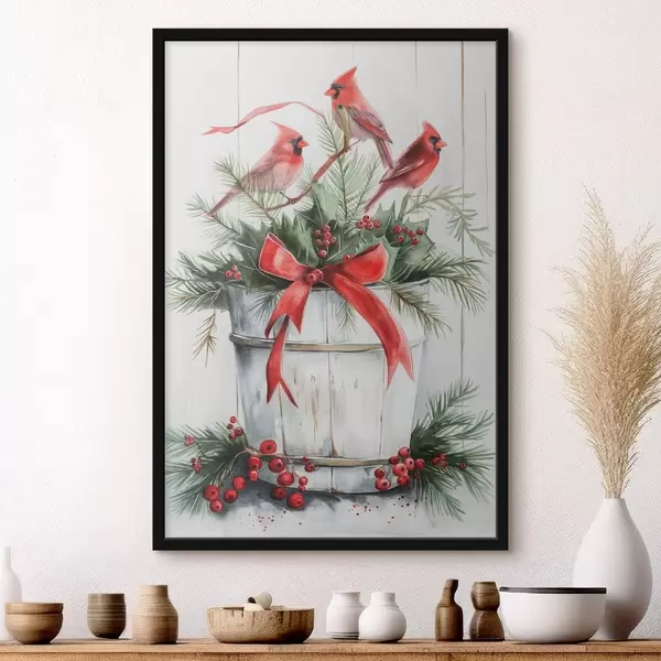 Poster Oiseaux sur un pot de Noël Nr f46607