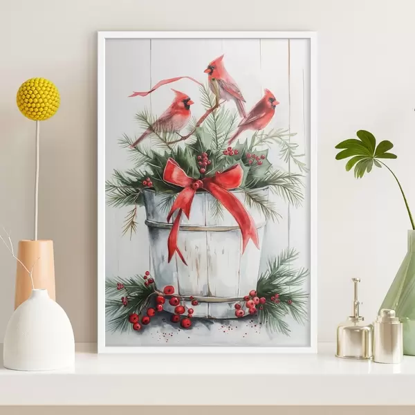 Poster Oiseaux sur un pot de Noël f46607