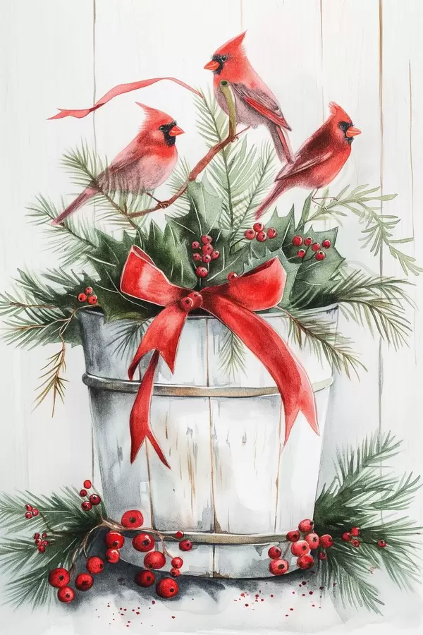 Poster Oiseaux sur un pot de Noël Nr f46607