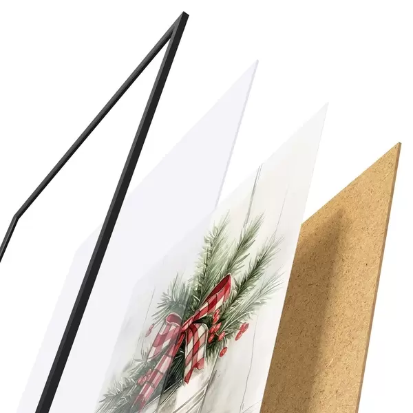 L’affiche encadrée est composée d’un cadre, d’un plexiglas, d’une image imprimée et d’un support en aggloméré. Elle est prête à être accrochée au mur grâce aux fixations situées à l’arrière.