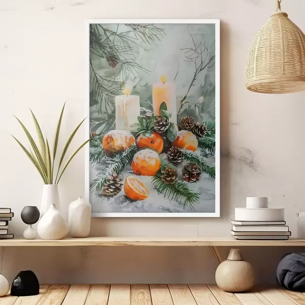 Poster Bougies, mandarines et pommes de pin Nr f46614