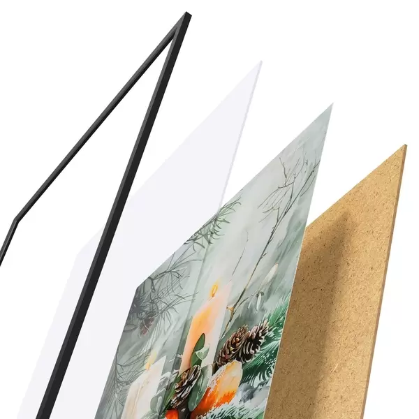 L’affiche encadrée est composée d’un cadre, d’un plexiglas, d’une image imprimée et d’un support en aggloméré. Elle est prête à être accrochée au mur grâce aux fixations situées à l’arrière.