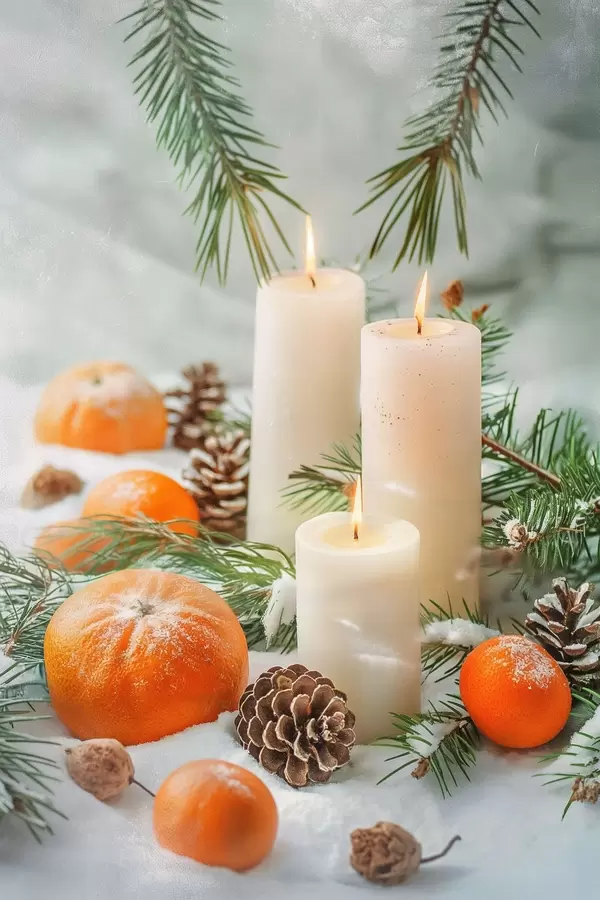 Poster Bougies, mandarines et pommes de pin Nr f46615