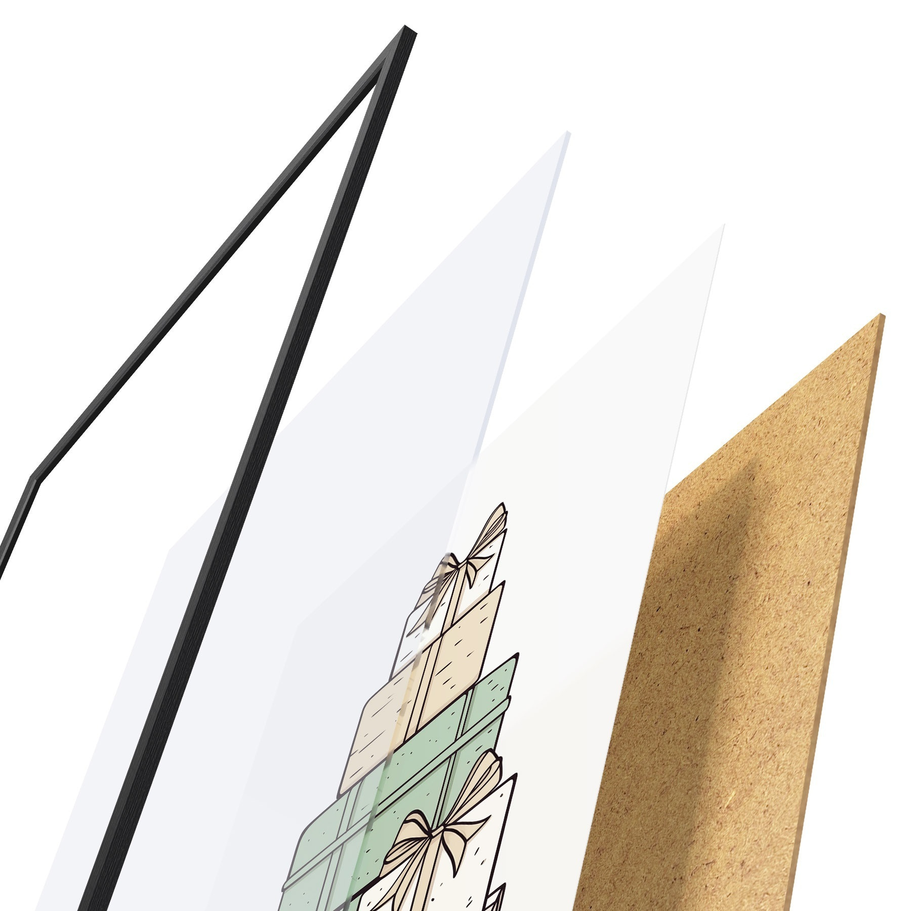 L’affiche encadrée est composée d’un cadre, d’un plexiglas, d’une image imprimée et d’un support en aggloméré. Elle est prête à être accrochée au mur grâce aux fixations situées à l’arrière.