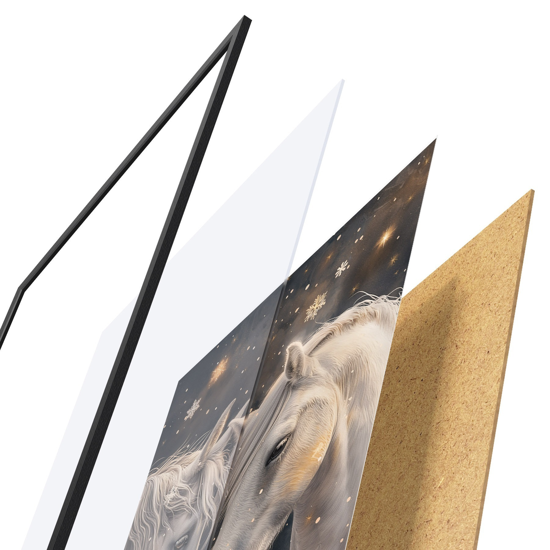 L’affiche encadrée est composée d’un cadre, d’un plexiglas, d’une image imprimée et d’un support en aggloméré. Elle est prête à être accrochée au mur grâce aux fixations situées à l’arrière.