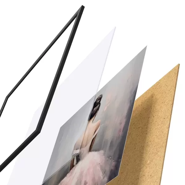L’affiche encadrée est composée d’un cadre, d’un plexiglas, d’une image imprimée et d’un support en aggloméré. Elle est prête à être accrochée au mur grâce aux fixations situées à l’arrière.