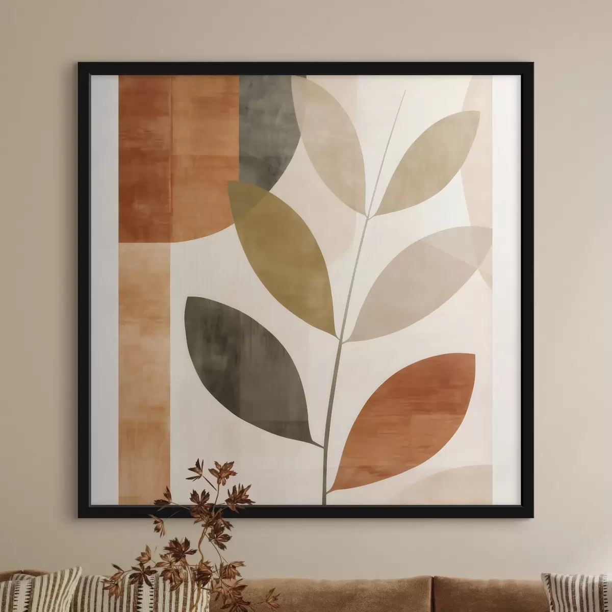 Poster Composition chaleureuse de feuilles dans un style minimaliste et lyrique f46646