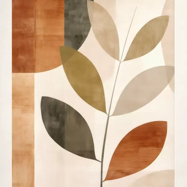 Poster Composition chaleureuse de feuilles dans un style minimaliste et lyrique f46646