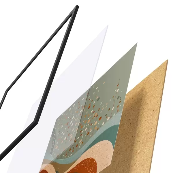 L’affiche encadrée est composée d’un cadre, d’un plexiglas, d’une image imprimée et d’un support en aggloméré. Elle est prête à être accrochée au mur grâce aux fixations situées à l’arrière.