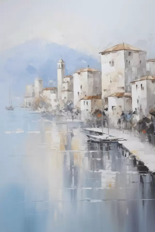 Poster Maisons abstraites au bord de la baie imitation de peinture Nr f46673