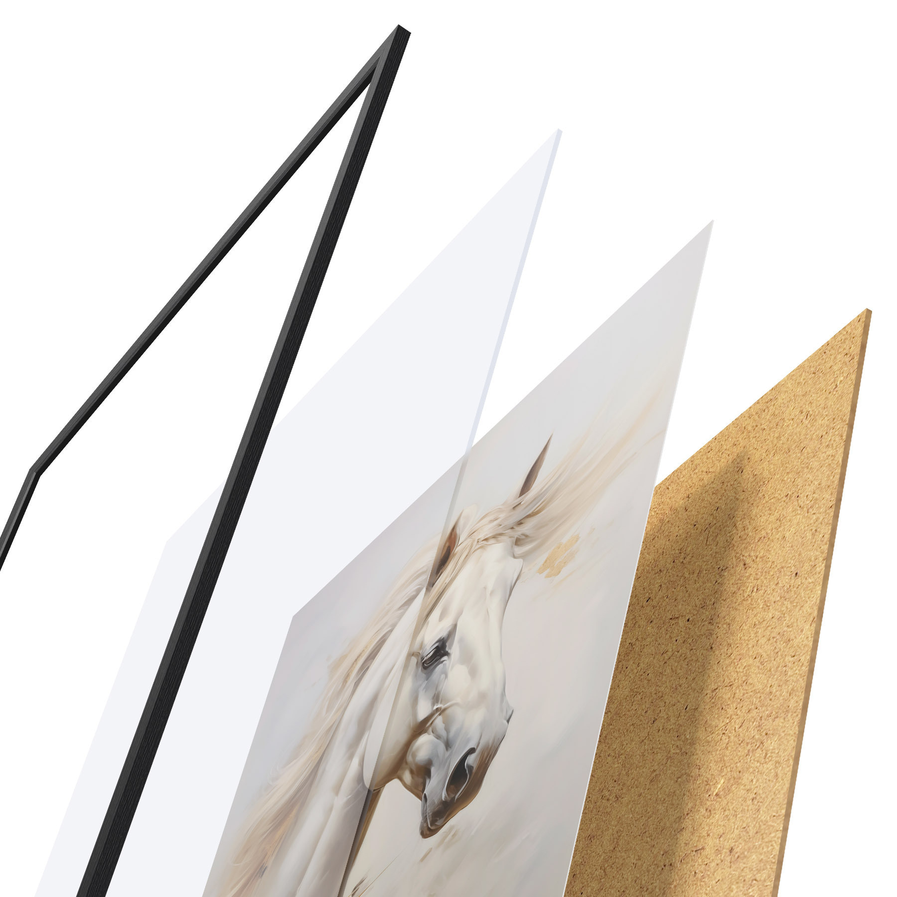 L’affiche encadrée est composée d’un cadre, d’un plexiglas, d’une image imprimée et d’un support en aggloméré. Elle est prête à être accrochée au mur grâce aux fixations situées à l’arrière.