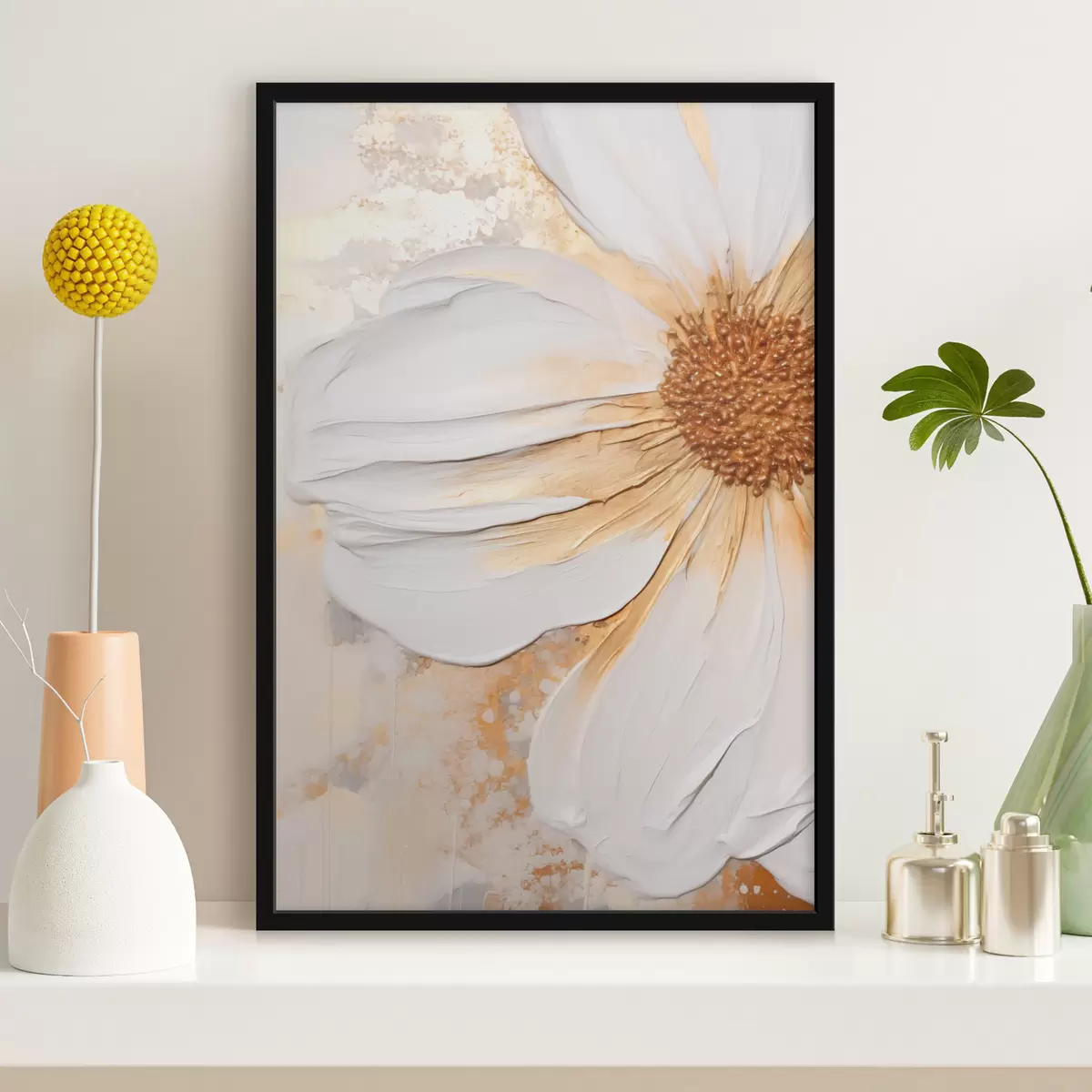 Poster Une fleur blanche aux pétales délicats, fond abstrait texturé, élégant, art décoratif f46692
