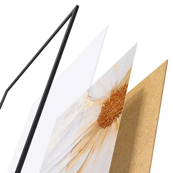 L’affiche encadrée est composée d’un cadre, d’un plexiglas, d’une image imprimée et d’un support en aggloméré. Elle est prête à être accrochée au mur grâce aux fixations situées à l’arrière.