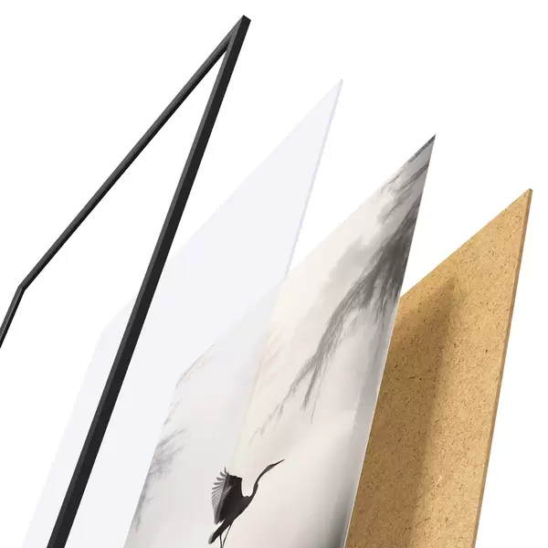L’affiche encadrée est composée d’un cadre, d’un plexiglas, d’une image imprimée et d’un support en aggloméré. Elle est prête à être accrochée au mur grâce aux fixations situées à l’arrière.
