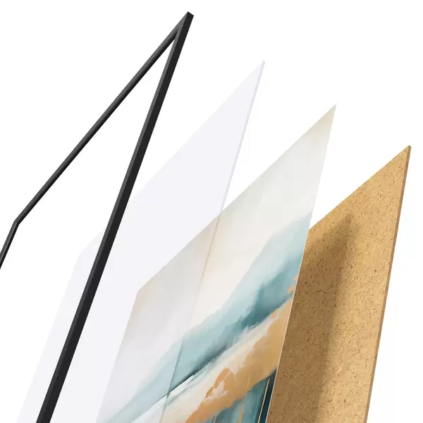 L’affiche encadrée est composée d’un cadre, d’un plexiglas, d’une image imprimée et d’un support en aggloméré. Elle est prête à être accrochée au mur grâce aux fixations situées à l’arrière.