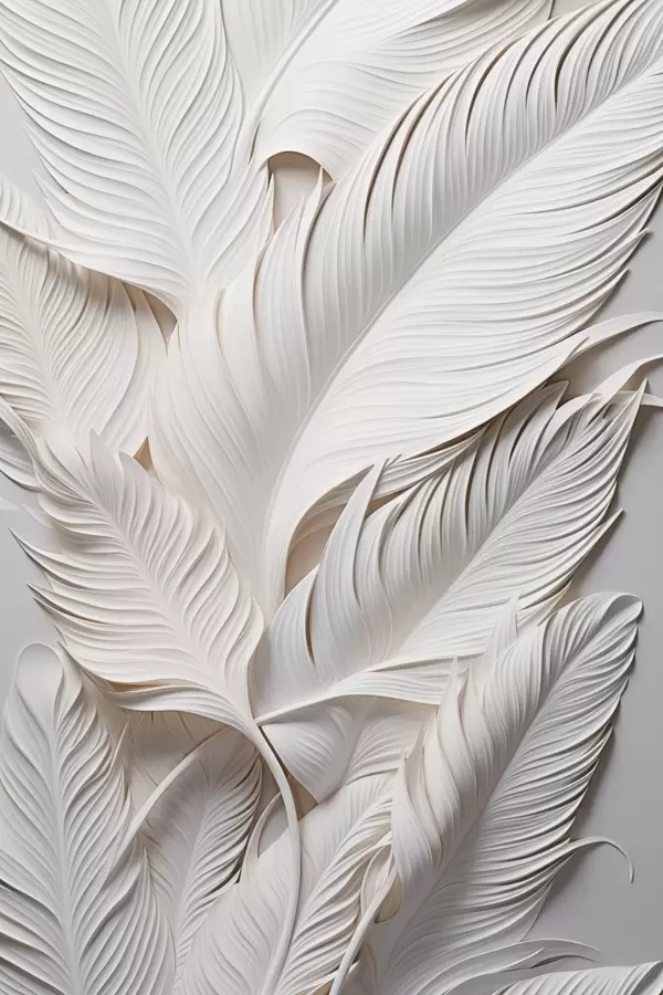 Poster Feuilles blanches aux détails complexes, créant un effet texturé et stratifié, art minimaliste Nr f46706