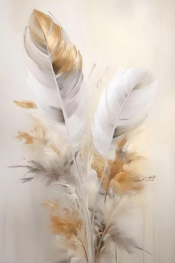 Poster Plumes abstraites, entourées de plumes beiges et brunes, douces et délicates, sur un fond beige clair Nr f46711