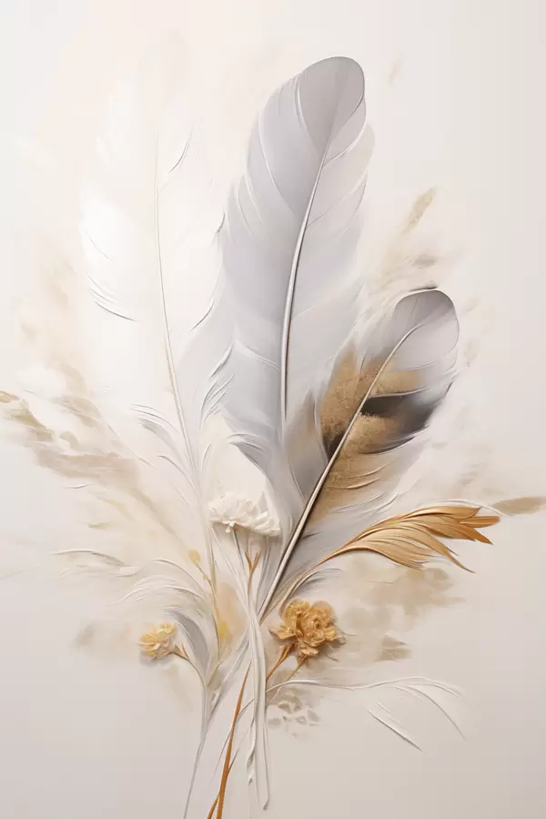 Poster Plumes abstraites, entourées de plumes beiges et brunes, douces et délicates, sur un fond beige clair Nr f46712