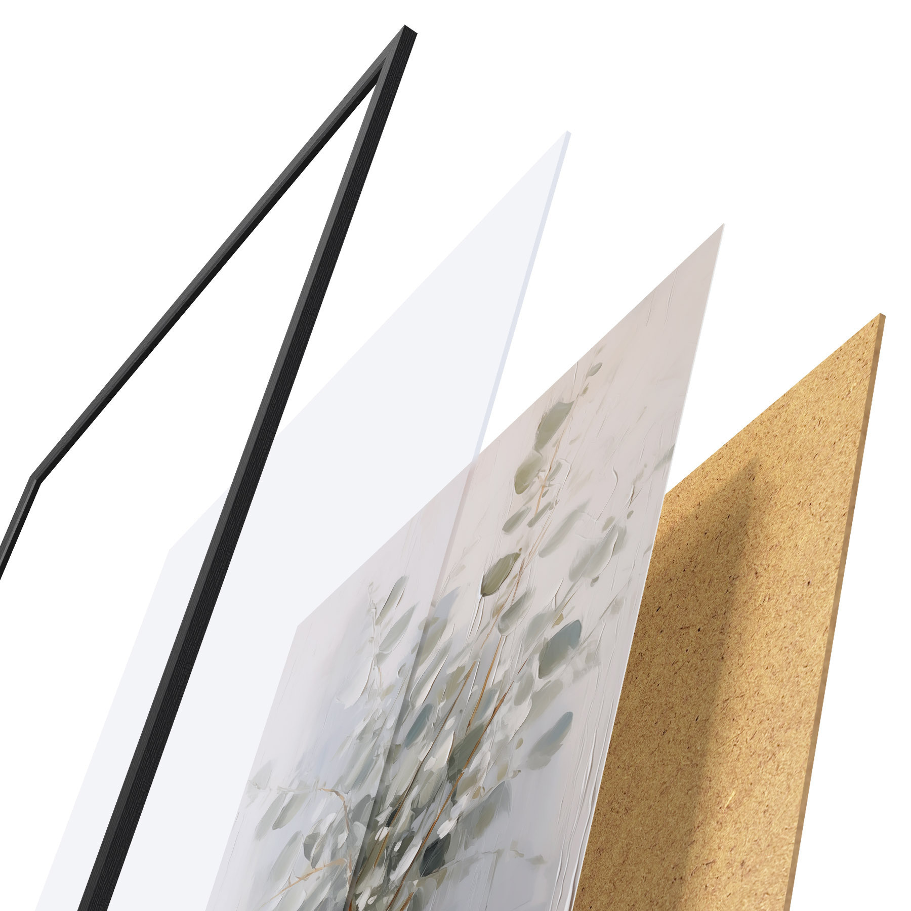 L’affiche encadrée est composée d’un cadre, d’un plexiglas, d’une image imprimée et d’un support en aggloméré. Elle est prête à être accrochée au mur grâce aux fixations situées à l’arrière.