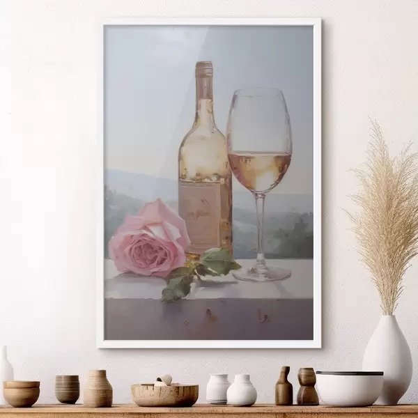 Poster Une bouteille et un verre de vin, ainsi qu'un petit chien portant des lunettes, imitation peinture Nr f46721