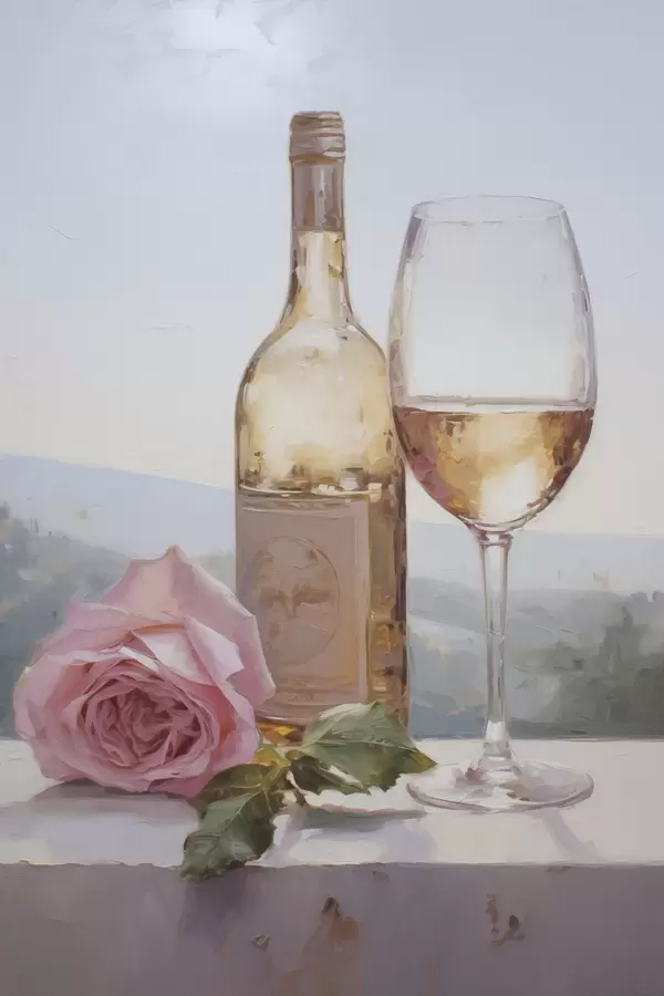 Poster Une bouteille et un verre de vin, ainsi qu'un petit chien portant des lunettes, imitation peinture Nr f46721