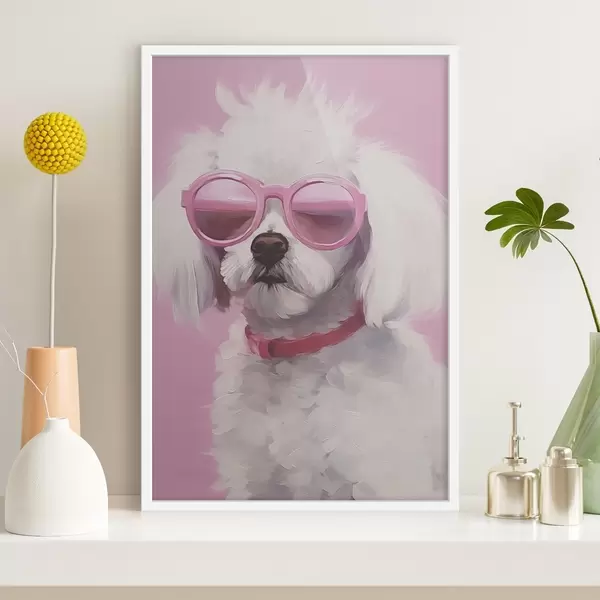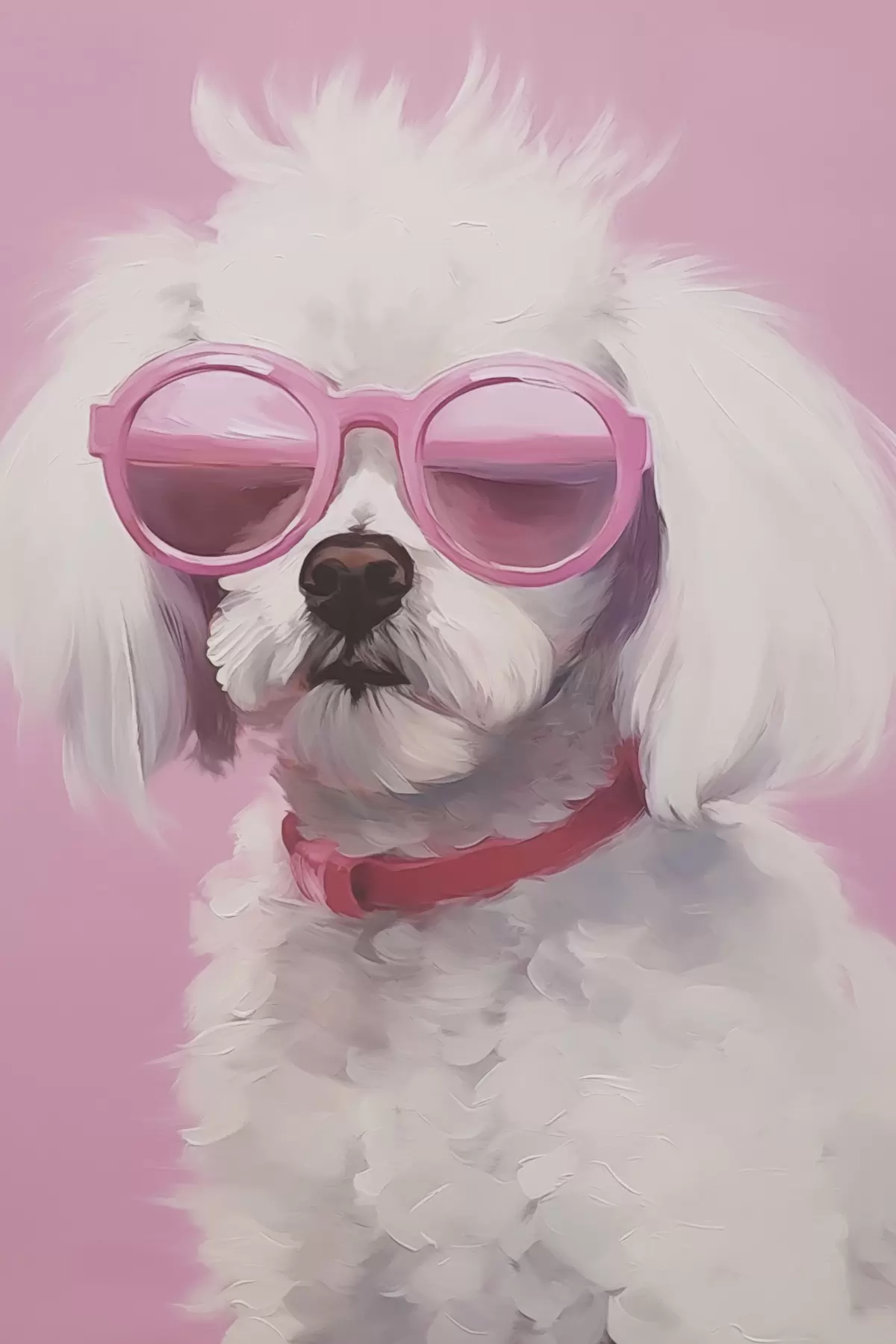 Poster Un petit chien portant des lunettes est une imitation de peinture. Nr f46722