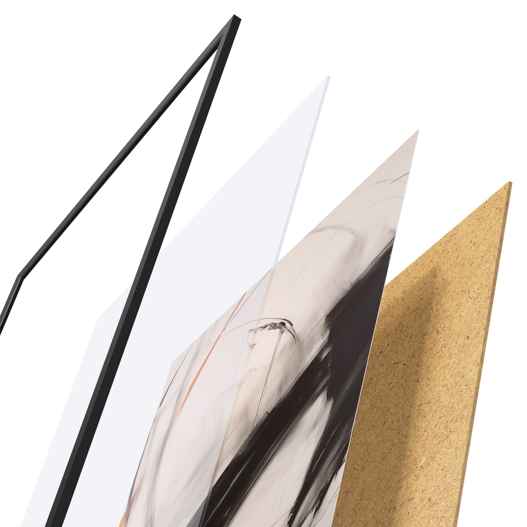 L’affiche encadrée est composée d’un cadre, d’un plexiglas, d’une image imprimée et d’un support en aggloméré. Elle est prête à être accrochée au mur grâce aux fixations situées à l’arrière.