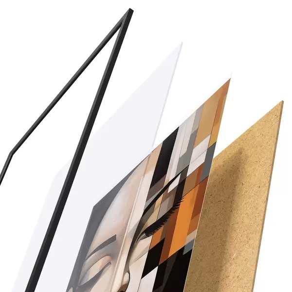 L’affiche encadrée est composée d’un cadre, d’un plexiglas, d’une image imprimée et d’un support en aggloméré. Elle est prête à être accrochée au mur grâce aux fixations situées à l’arrière.