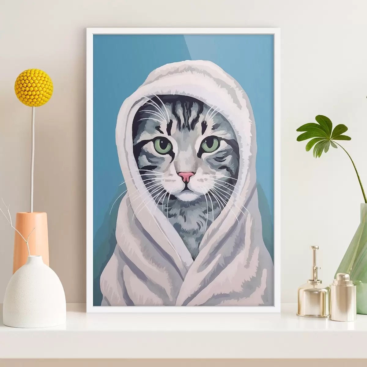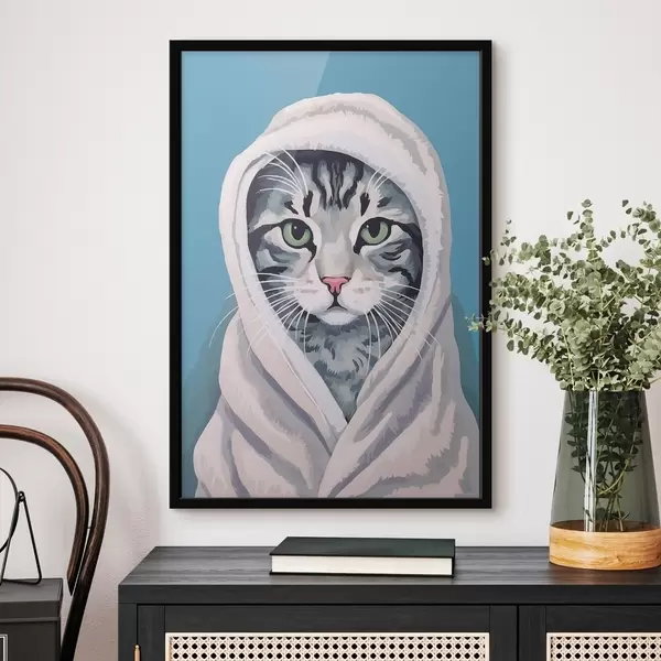 Poster Chat rayé dans une serviette blanche Nr f46740