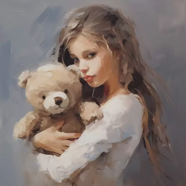Poster Fille avec un ours en peluche, imitation de peinture Nr f46746