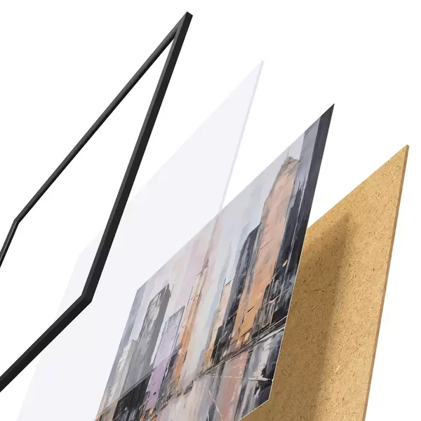 L’affiche encadrée est composée d’un cadre, d’un plexiglas, d’une image imprimée et d’un support en aggloméré. Elle est prête à être accrochée au mur grâce aux fixations situées à l’arrière.