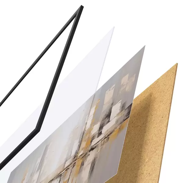 L’affiche encadrée est composée d’un cadre, d’un plexiglas, d’une image imprimée et d’un support en aggloméré. Elle est prête à être accrochée au mur grâce aux fixations situées à l’arrière.