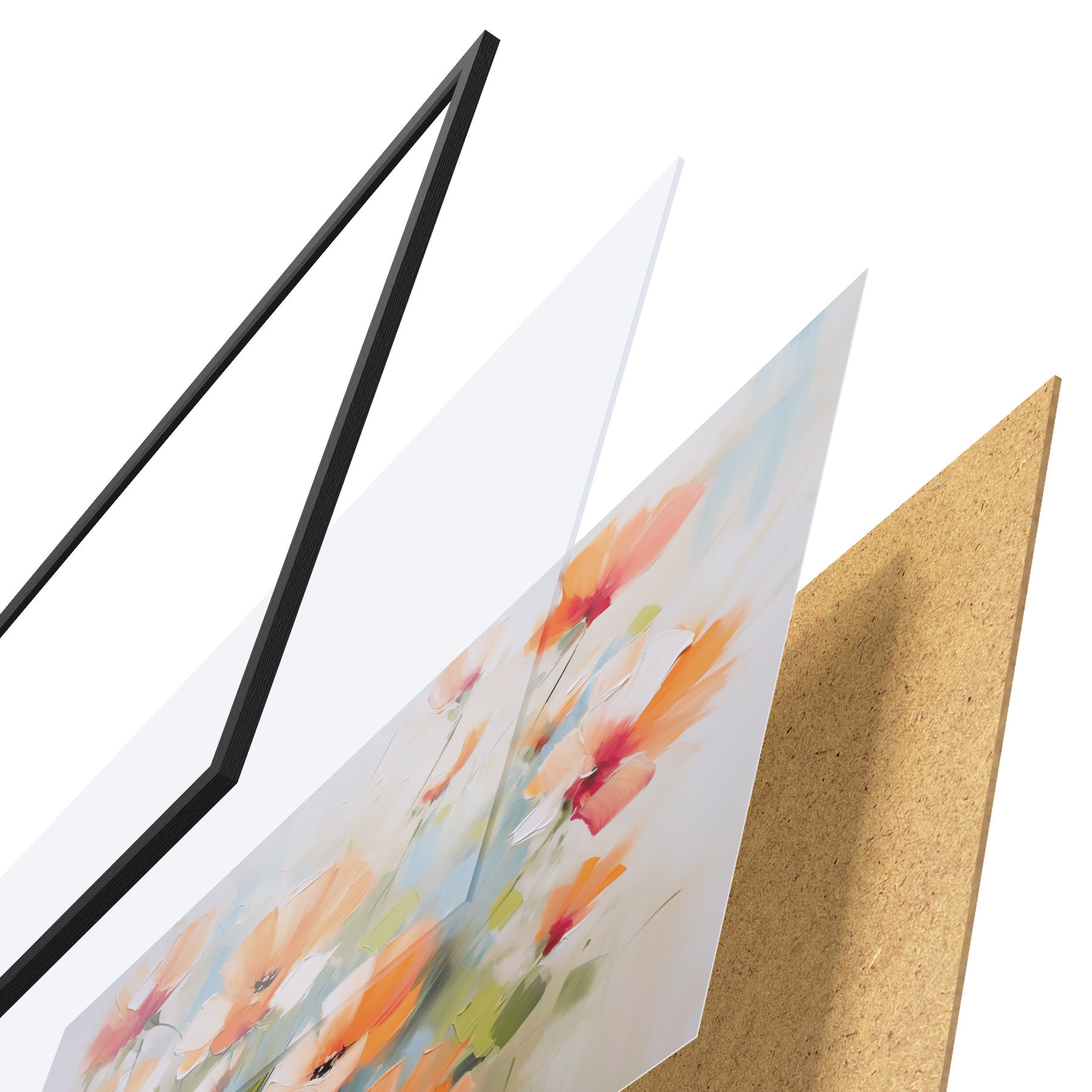 L’affiche encadrée est composée d’un cadre, d’un plexiglas, d’une image imprimée et d’un support en aggloméré. Elle est prête à être accrochée au mur grâce aux fixations situées à l’arrière.