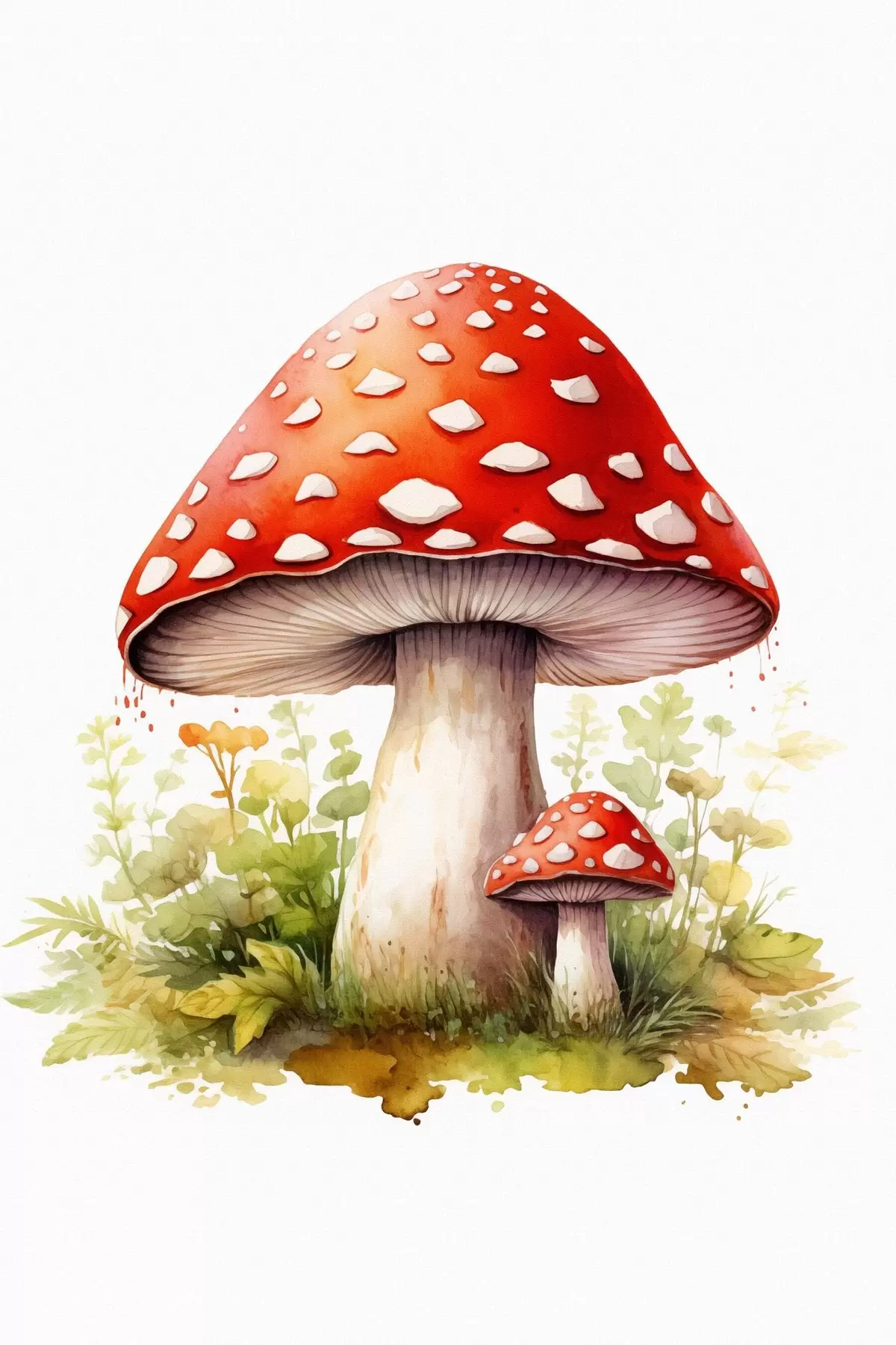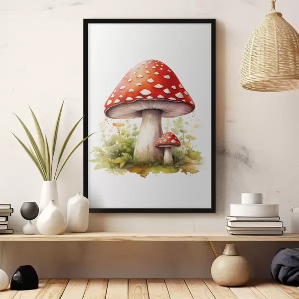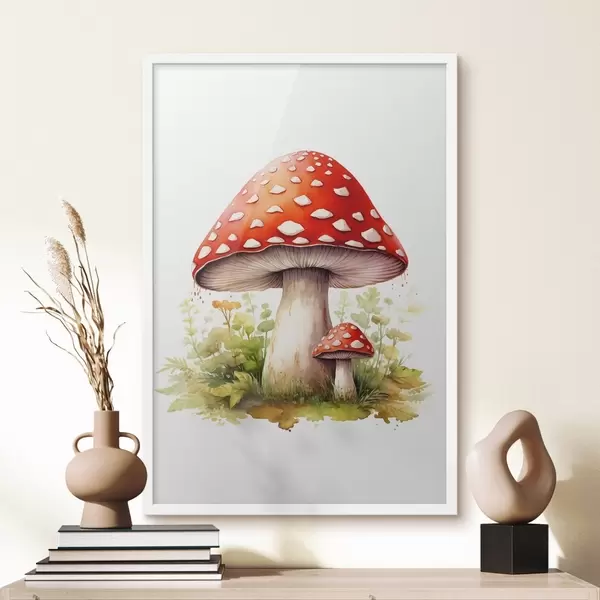 Poster Champignons des bois, amanite tue-mouche, imitation aquarelle Nr f46767