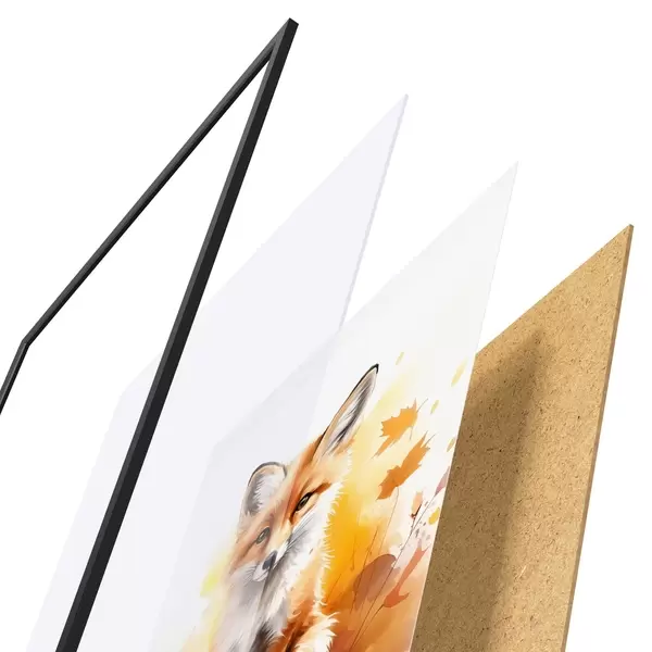 L’affiche encadrée est composée d’un cadre, d’un plexiglas, d’une image imprimée et d’un support en aggloméré. Elle est prête à être accrochée au mur grâce aux fixations situées à l’arrière.