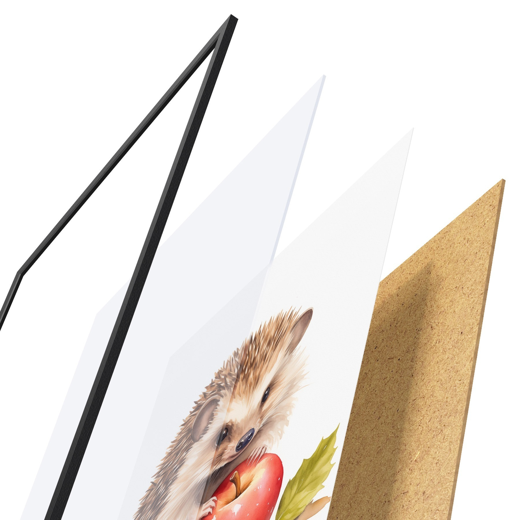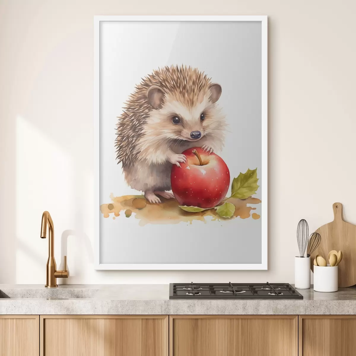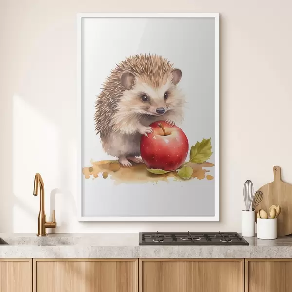 Poster Hérisson et pomme, imitation aquarelle Nr f46769