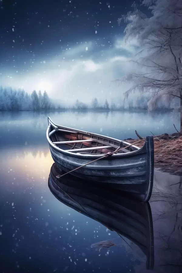 Poster Bateau vide au bord d'un lac en hiver Nr f46773