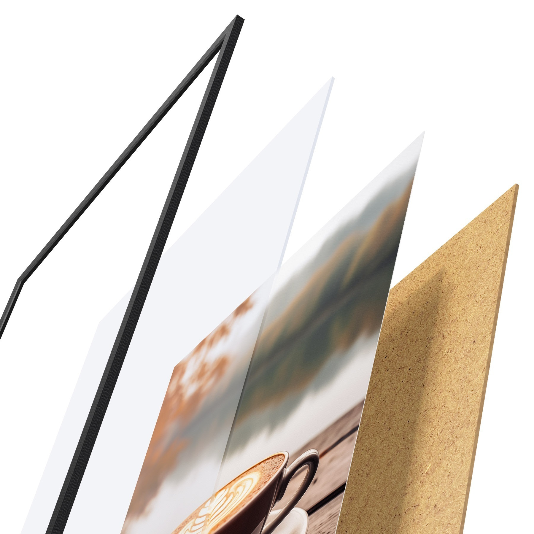 L’affiche encadrée est composée d’un cadre, d’un plexiglas, d’une image imprimée et d’un support en aggloméré. Elle est prête à être accrochée au mur grâce aux fixations situées à l’arrière.