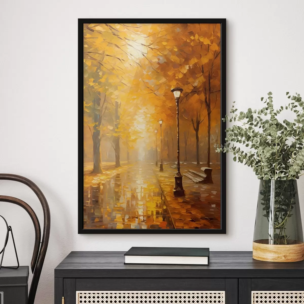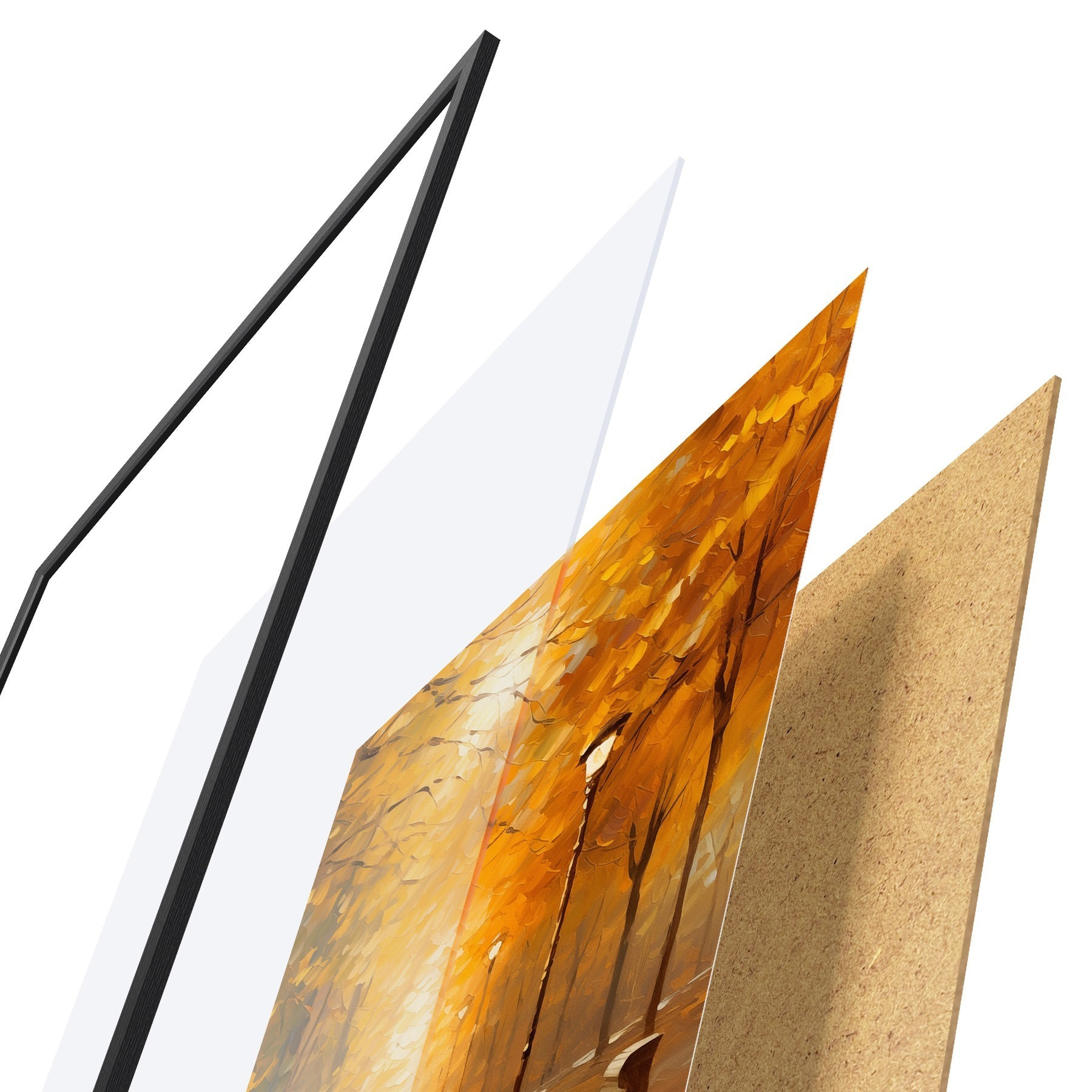 L’affiche encadrée est composée d’un cadre, d’un plexiglas, d’une image imprimée et d’un support en aggloméré. Elle est prête à être accrochée au mur grâce aux fixations situées à l’arrière.