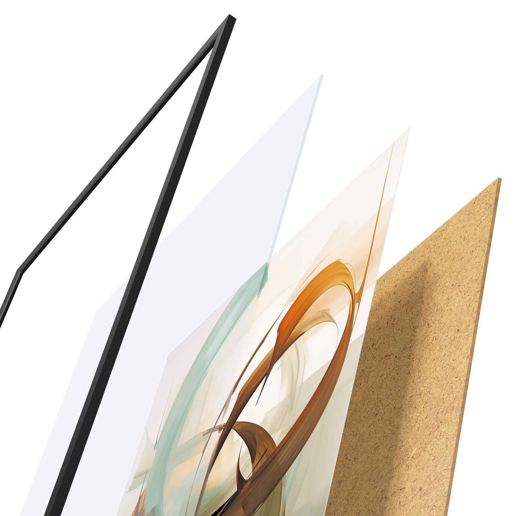 L’affiche encadrée est composée d’un cadre, d’un plexiglas, d’une image imprimée et d’un support en aggloméré. Elle est prête à être accrochée au mur grâce aux fixations situées à l’arrière.