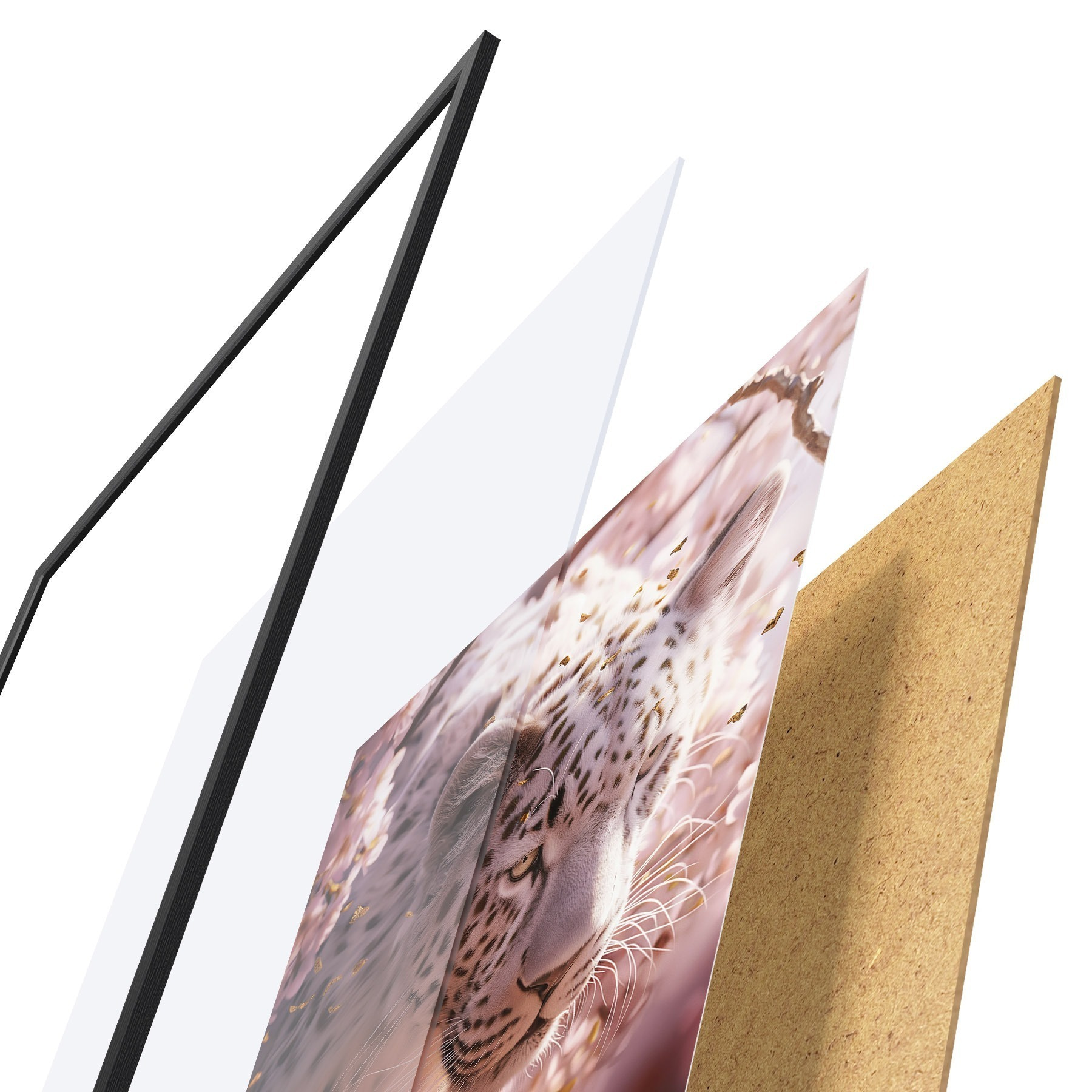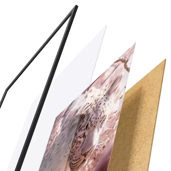 L’affiche encadrée est composée d’un cadre, d’un plexiglas, d’une image imprimée et d’un support en aggloméré. Elle est prête à être accrochée au mur grâce aux fixations situées à l’arrière.
